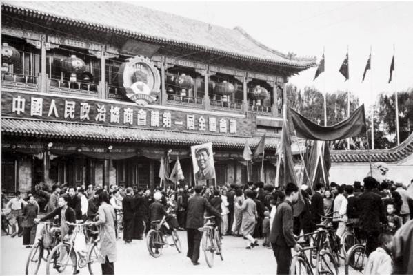 参加中国人民政治协商会议第一届全体会议的毛泽东(前排左三)、朱德(前排左二)、李济深(前排左一)、沈钧儒(前排左四)等